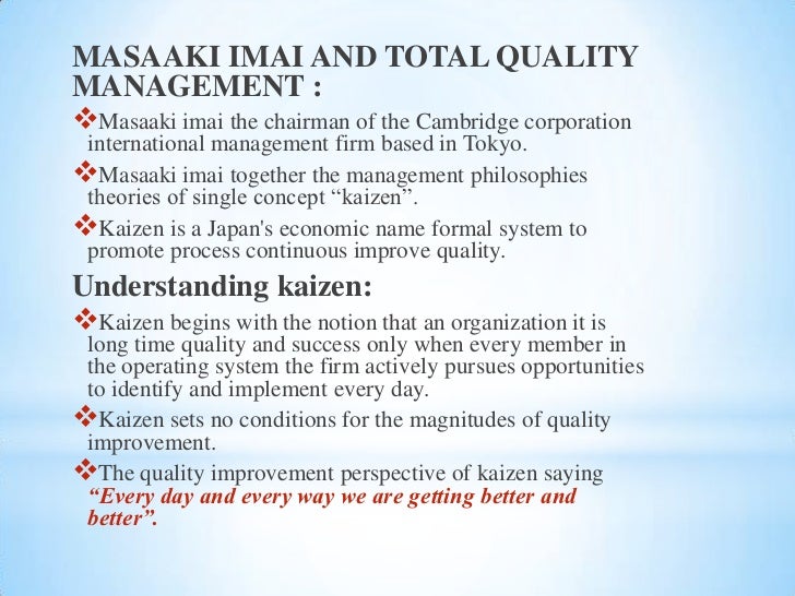 Image source: https://image.slidesharecdn.com/masaakiimaiandtotalqualitymanagement-111208210003-phpapp01/95/masaaki-imai-and-total-quality-management-2-728.jpg?cb=1323379138